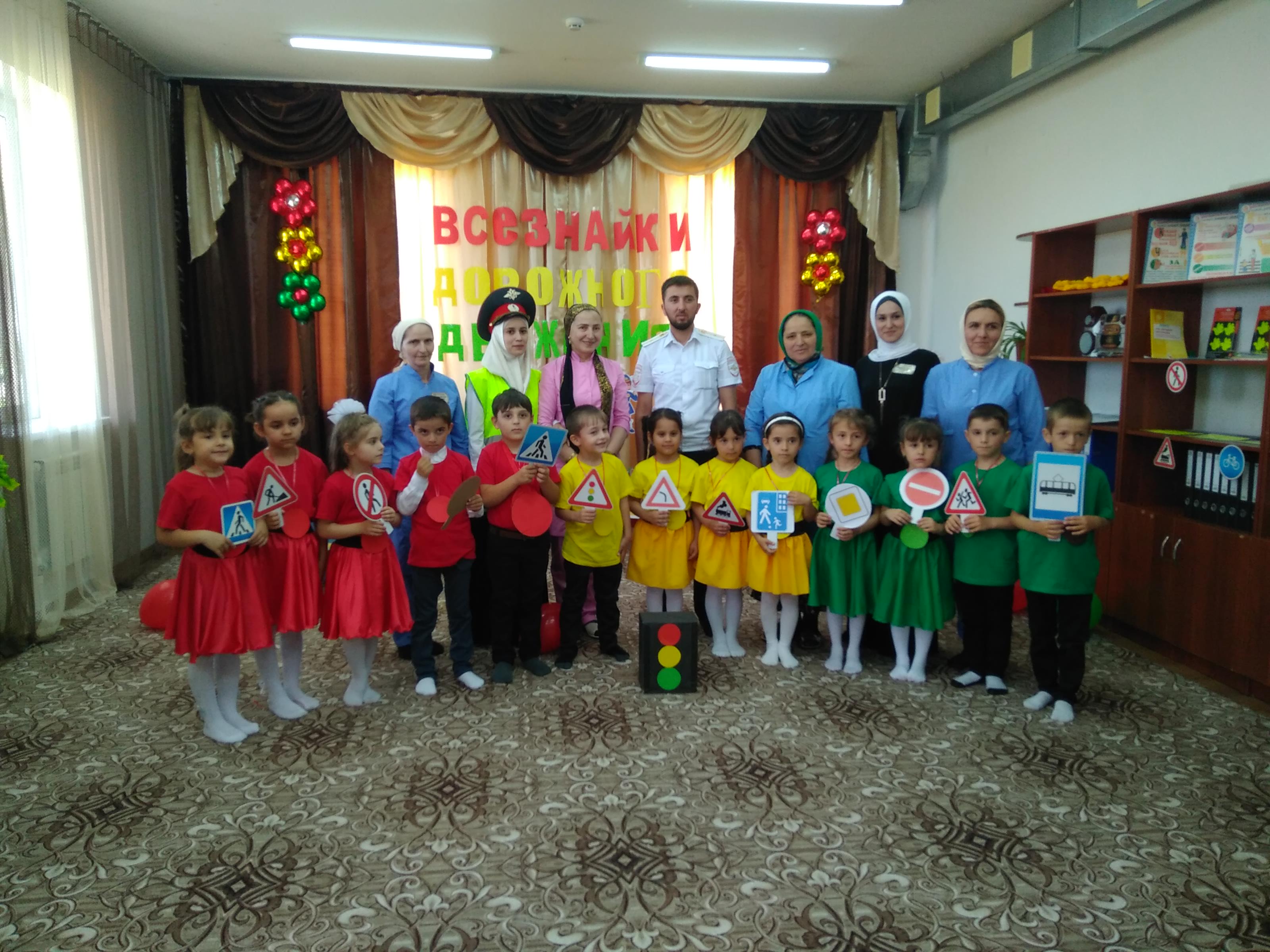 23.05.2019В МБДОУ "ДЕТСКИЙ САД "ЗЕЗАГ" С. КОБИ" прошла Викторина по ПДД "Всезнайки дорожного движения" с участием инспектора по прпопоганде безопасности дорожного движения ОГИБДД ОМВД России по Шелковскому району Солтаева Шамхана Шахрудидиевича. С целью систематизировать знания детей об основах безопасногоповедения пешехожов; уточнять и закреплять знания о правилах дорожного движения.